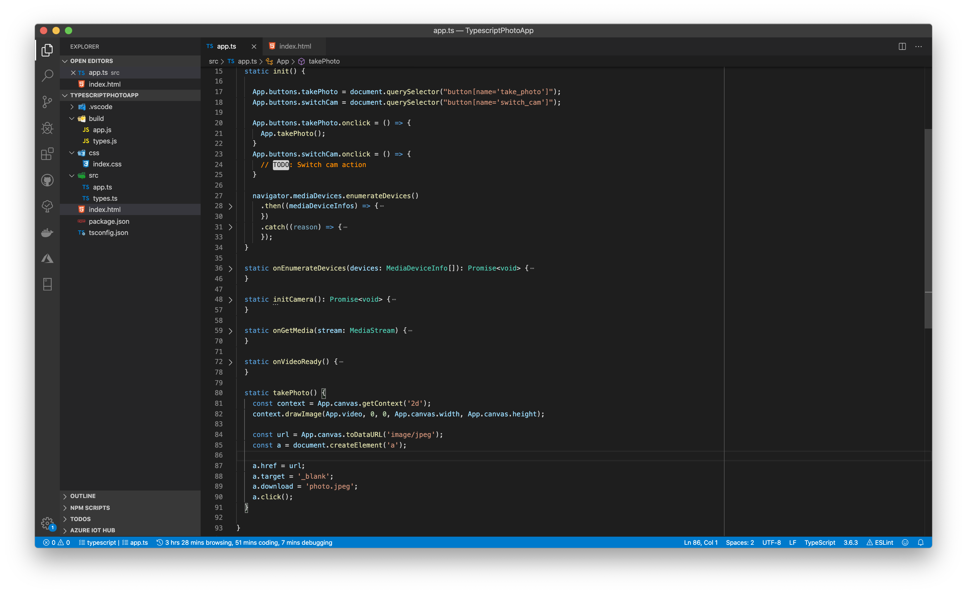 Trong bài viết này, chúng ta sẽ cùng đi xây dựng một ứng dụng đơn giản có sử dụng camera, ứng dụng sẽ sử dụng HTML5, CSS3 và Typescript.